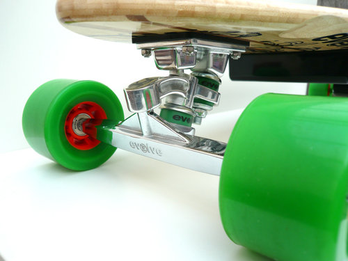 Die weiterentwickelten Super Cave Achsen haben jetzt auch einen Evolve Schriftzug. The improved Super Carve Trucks show the evolve logo.