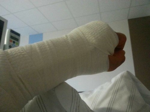 Das kann bei 40 km/h ohne Handgelenkschützer passieren 3 Stunden später direkt operiert. Hab jetzt eine Metallplatte im Handgelenk und ordendlich Schmerzen. Was mit dem Knie passiert ist, wird sich morgen zeigen. Verdammter Sch...!!!