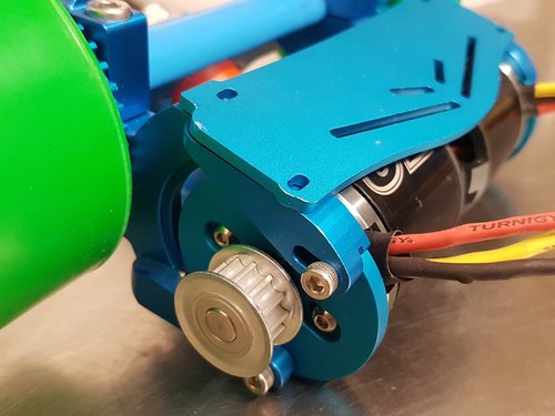 Motormount ----> Bei der Halterung sind natürlich Pully für den Motor, Zahnrad für die Rolle und Riemen dabei...