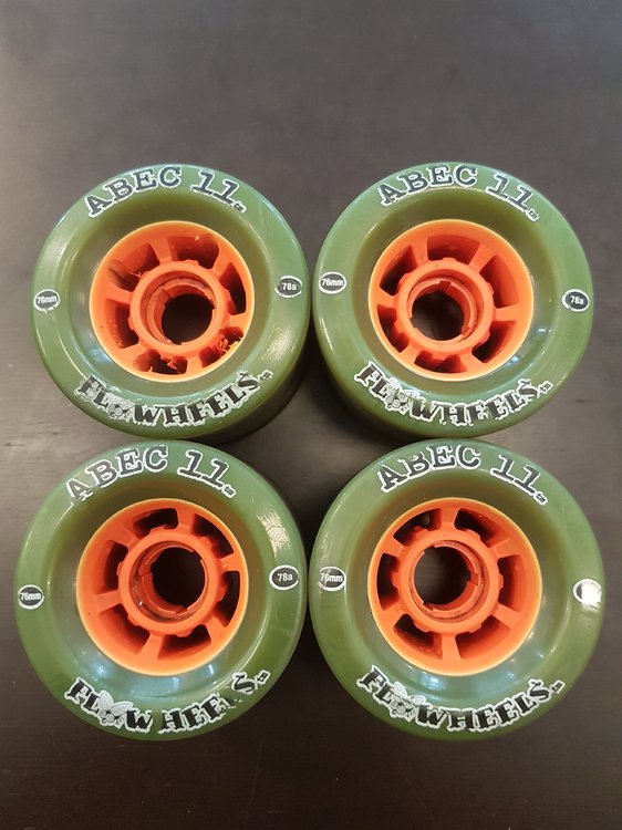 Moin,trenne mich von meinen Abec11 Flywheels. Die Rollen stammen aus meinem elektro Skateboard Projekt und wurden sehr wenig gefahren. Die Rollen haben den kompletten Durchmesser, sind nicht konisch oder haben flatspots oder irgendwas. An einer der Rollen war ein Zahnrad angebracht, was Spuren hinterlassen hat (siehe Bilder)Die Rollen lagen im Karton im Keller und haben leider Ihre Farbe verändert. Sieht sogar eingtl besser aus 😉 Das Urethan ist aber weder hart noch brüchig!NEUPREIS derzeit bei ca 75,-- 4Stck Flywheels- Maße 76mm 78A Standort: Hamburg Versand natürlich möglich Anfragen bitte per PN. Dankeeeee