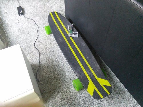 Hi E-Skater, nachdem sich nun keiner mehr gemeldet hat und mein Thread nun auch etwas untergegangen ist, wollte ich jetzt nochmal auf mein Ranis 600 aufmerksam machen, welches exakt baugleich ist mit dem Skatey 600. Nun wollte ich es für 150€ verkaufen! Der Preis ist unschlagbar! Das Board findet man bei http://www.electro-fun.de/. Der Service ist echt gut und an Ersatzteilen sollte es nicht scheitern, da man ja auch Teile vom Skatey oder auch Mobo 600 nachkaufen kann. Geschwindigkeit mit GPS gemessen: 31,4km/h bei 55kg Ich bin nun auch des öfteren gefahren und demnach sollte meine Höchstreichweite von 13,4km nicht mehr möglich sein aber 10km sollten noch locker drin sein. Ich habe am Board sehr viel rumgewerkelt und einige Sachen verändert: Alle Schrauben raus und durch qualitativere ersetzt und da mir der Look nicht gefallen hat, sorgfältig Griptape draufgeklebt und ein sehr schönes Design drauf gesprüht. Sieht echt Klasse aus! Bilder bei nachfrage. Eine Macke hat das Board: Die vordere Achse lässt sich nicht mehr anziehen. Ich musste die Mutter absägen und durch eine neue ersetzen, aber das Problem habe ich dadurch nicht lösen können. Fahrbar ist es aber auf allllleeee Fälle! Und wenn ein Achsenträger kostet ca. 50€. Ich habe 2 Reifensätze einen Weicheren in grün, der echt geil ist und einen härteren schwarten, den ich nicht oft gefahren bin, weil die weichen einfach angenehmer sind Ich habe mir zusätzliche eine neue Fernsteuerung zuschicken lassen, da die alte es nicht mehr tat.Ich werde dann wahrscheinlich dennoch beide mitversenden. Ich hoffe ich habe euch alles beschreiben können und wie gesagt der Preis von 150€ + Versand ist unschlagbar! Diesmal sollte es funktioniern Gruß Nasim P.s.: Wenn ihr meinen alten Thread besucht, könnt ihr auch Bilder sehen.