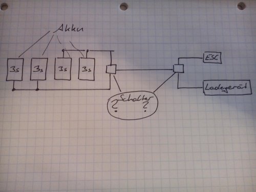 Jedoch brauche ich trotzdem noch einen Schalter zwischen den Akkus da mein Ladegerät nur für 6s und nicht 12s ausgelegt ist
