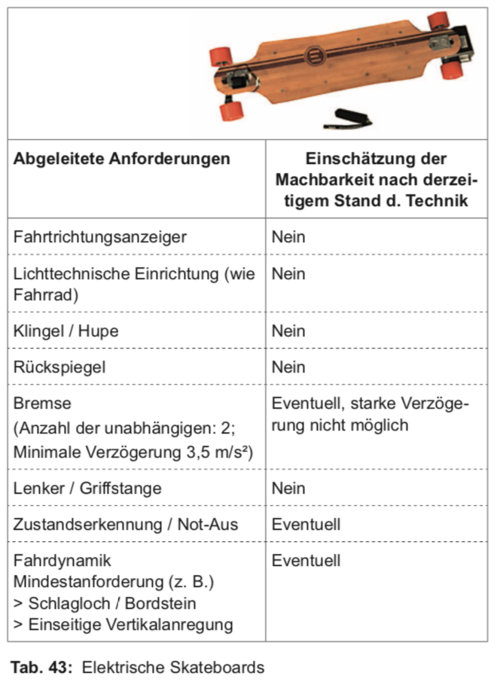 Auf welcher Seite steht das? Ich hab die Studie noch nicht komplett gelesen, sie ist ja schon sehr umfangreich aber ein paar seltsame Behauptungen sind mir aufgefallen die ich nicht nachvollziehen kann und gerne aufgeklärt hätte. Aus Seite 22 - 23 heißt es die Bremskraft sei zu stark und eine Stange würde helfen 👎 Ich kann das nicht nachvollziehen. Wenn derTestfahrer nicht in der Lage ist von alleine auf die Idee zu kommen das Körpergewicht so zu verlagern das man mit voller Bremskraft auf dem Board bleibt, was ja wirklich nicht schwer ist, dann sollte vielleicht vorher eine Einweisung erfolgen. Oder vielleicht einfach mal Kinder probieren lassen, die haben das immer sehr schnell drauf. Elektro-Skateboards sind mit der Motorbremse sicher. Powerslides als Bremsmanöver braucht man nur bei Skateboards ohne Bremse. Eine Stange würde helfen sich festzukrallen??? 😄 Auf einem Fahrrad haut es Einen, der das erste Mal damit fährt, auch vorne über wenn er mit den Bremsen am Lenker eine Vollbremsung versucht. Besonders wenn er zu stark mit der Vorderradbremse bremst. Ich bin doch etwas verwundert über diese laienhafte These. Ein Fahrer mit nur etwas Fahrpraxis hätte Ergebnisse geliefert. Genau so die Behauptung auf Seite 24: Eine Lenkstange macht bei Fahrzeugen die per Gewichtsverlagerung gelenkt werden keinen Sinn. Wenn dem so wäre hätten Skateboards, Longboards, Surfboards, Snowboards, eine Lenkstange. Ich bezweifle das bASt hat das tatsächlich ausprobiert und eine Stange an das evolve geschraubt. Wir haben da schon praktische Erfahrung und würden nie zu einer Stange raten um Speed wobbling zum verringern oder um sich beim Bremsen daran festhalten zu können. Zum Spass haben kann so eine Stange allerdings "mal" ganz witzig sein. https://www.elektro-skateboard.de/videos/view-358-eskates-elektro-skateboards-sportsnow-hannover-2013 https://www.elektro-skateboard.de/videos/view-168-eskates-sportnow-hannover-e-skateboard/ https://www.elektro-skateboard.de/videos/view-291-hütchentesttreffen-bei-mrconstruct3-2011/ https://www.elektro-skateboard.de/videos/view-97-kleiner-waldritt-mit-kai-elektroskateboardde/ PS: Erfreulich ist, da die Verzögerung des alten bamboo Gen2 (wann war da nochmal aktuell, vor wieviel Jahren??) damals schon mit 3,3 m/s2 gemessen wurde dann reicht die Bremskraft mit den heutigen Doppelmotor Boards allemal, wenn die Anforderung von 3,5 m/s2 aus dem aktuellen eKFV-Entwurf so bestehen bleibt. -