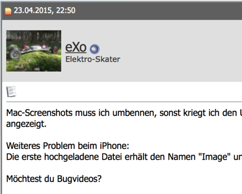 kennst du tapatalk? https://tapatalk.com Fürs smartphone eine coole Lösung fürs Forum. Bei dem iphone Safari Bug bin ich mir noch nicht sicher ob es am Safari oder an der Forensoftware liegt und ob ich es mit einen workarround / bugfix patchen kann...