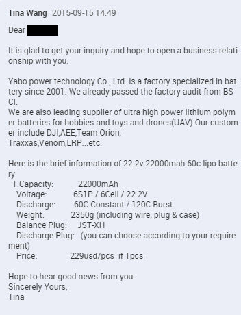 Wenn man nur einen Akku bestellt kostet so ein Pack mit 22'000mAh = 229$ Bei Hobbyking kosten 8000mAh = 100 Euro! :arf: