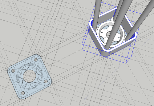 Der Abstand zwischen den äusseren Sensoren und dem Motor wird aufgrund der nicht 100% passenden Form der Platine halt immer n bisschen grösser sein als der Abstand unserer mittleren Diode. Bei den Grad bin ich aber bei dir, das macht den Braten auch nicht heiss. Da ich mein PCB sowieso verpacken werden stört mich die optische Abweichung nicht wirklich, aber 59mm sind halt einfach keine 63mm. Der seitliche Ausschnitt (so wie das 0design macht) ist aber eigentlich nicht nötig. Man kann ja den ganzen Ring ausrichten und auf dem PCB möchte ich eigentlich nicht noch mehr Spiel haben. Ich möchte nur n bisschen mehr Fleisch am Knochen, damit ich die abstehenden Füsschen dicker machen kann. (Siehe Anhang - EDIT: konische Füsschen wäre auch noch was..) Aktuell kann man die Platine mit einer Druckkraft von 39.05N gegen den Motor drücken. Wenn ich die Höhe reduziere wird diese Kraft zunehmen. Also nochmal zeichnen, drucken & messen. Die aktuelle Charge lässt sich schon verwerten, keine Sorge. Das war nur ein Input für die nächste Charge. ESCs mit Sensoranschluss hab ich zwei Modelle bei mir rumliegen. Zu erst will ich aber die Halterung fertigstellen. Dann mal sehen bis wann ich das montiert kriege.