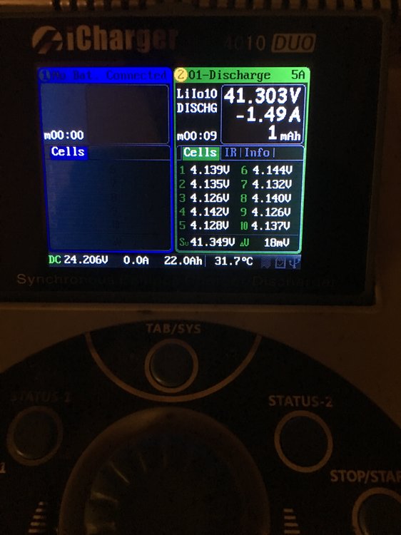 Also erste ernüchternde Erkenntnis! Ich habe gestern den 20700´er Akku am Ladegerät angeschlossen. Die Anzeige hat mir 35 Volt angezeigt. Nachdem ich den Akku entladen habe, zeigte mir das Ladegerät einen Wert von -1896mAh an bei 30 Volt. Ich habe mir gedacht, ok da ist etwas schief gelaufen, einer der Zellen hat nur 1P ????? Nachdem der Akku auf 30 Volt war habe ich ihn über Nacht geladen. Die angehängten Bilder sprechen für sich 10S/3P mit 12833mAh :peace: Jetzt kommt die Praxis, was die Zellen wirklich können :skep: -