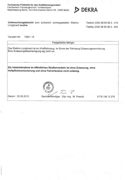 Today while riding through Berlin I was stopped by police on bicycles close to the Reichstag. I was stopped like this before and thought they just want to ask questions. Not so lucky today. They told me they do not know whether my KFZ is legal and so they have to confiscate it and send it to be tested as street-worthy or not. Oh - and this will most likely take 2-3 weeks to complete...