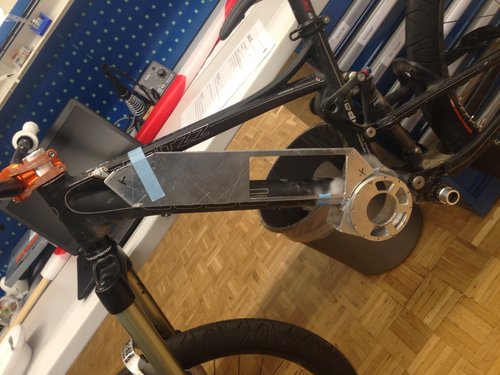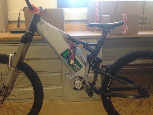 Update: Akkubox ist im design. das ganze soll in den rahmen integriert werden und auch optisch was her machen. da drin platz hat es für zwei mittelgrosse 6S akkus. seitlich dann eine klappe für den einschub. unteres rahmenrohr wird oberhalb dann noch "gestraft" vor dem einschweissen -