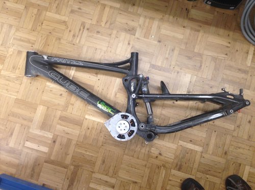Hallo ihr verrückten elektrobrett fahrer. da ich ja total begeistert bin von elektro motoren und der jens so ein geiles drift teil mit ordentlich dampf gebaut hat... habe ich gedacht ich bau mir jetzt auch mal noch was zum rauf sitzen. die idee hatte ich schon länger aber jetzt gehts an die trennscheibe, schweissgerät und fräsmaschine. idee: -alter Cube Fritzz Freeride rahmen -Rotomax 150ccm Elektromotor (9.8kw) das ganze verbauen als mittelmotor, es soll ein reines "moped" werden. der motor wird in den rahmen integriert und das akkufach auch. schweissen etc. ja... dann halt ich euch mal auf dem laufenden warum so viel power... ja einfach, wie jenso gesagt hat "mal schauen was geht" hehehe -