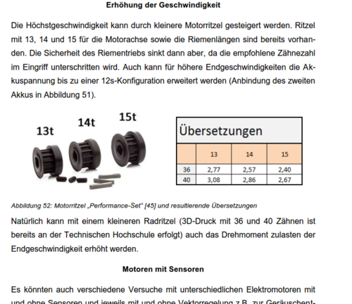 [verkaufe] Premium E-Board-Projekt (bis zu 36,4 km/h)stefan90478 hat ein Thema erstellt in: Gebrauchtbörse Liebe Community, schweren Herzens verkaufe ich mein geliebtes E-Longboard. Es war mein Masterprojekt an der Uni. Ich selbst studiere Maschinenbau und bin auch Werkzeugmechaniker - das Board ist also mit Fokus auf Qualität und Haltbarkeit gebaut. Es ist alles mit besten Wissen und Gewissen ausgelegt. Ich fahre seit 15 Jahren Skateboard und habe mir mit dem Board einen Traum erfüllt. Insgesamt bin ich vielleicht 20 km damit gefahren - die Bilder zeigen den derzeitigen Zustand. Ihr seht dass es noch fast wie neu aussieht. Ich werde bald heiraten und will deshalb das Board verkaufen... Die Bilder und Auszüge aus meiner Doku enthalten alle technischen Details (Softwarestand etc.) und sollten alle eure Fragen beantworten. Hier nur wenige Anmerkungen: * Höchstgeschwindigkeit 32,8 km/h [40t/15t (derzeit montiert) mit Barneys Ritzel-Rechner und 29,4V (Maximalwert, voll geladen!); 36,4 km/h möglich mit 36t/15t (36er/40er Rad und Enertion Ritzel Performance Set 13t/14t/15t beiliegend)] * Die Radritzel sind per Premium-Rapid-Prototyping gedruckt (gleiche Festigkeitswerte wie ABS, Material - Maschine etc. siehe Grafik). Mein Prof kalkulierte erst über 150 Euro, aber dann hat er mir die Teile doch geschenkt. Kostenlos gebe ich sie auch an euch weiter! (siehe Kostenaufstellung, zweiter Post) * Downhill-Deck ist von Arbor aus Kalifornien * Die Lenkgummis der Achsen sind stabilitäts-modifiziert (Untere Tonne der Caliber Trucks, oberer Cone ersetzt durch selbst abgedrehte Thunder Tonne, kein Flattern egal wie schnell ihr fahrt!) * Akku etc. (Pos. 1-4 bei der Kostenaufstellung) war damals Neuware von elkick, die ich auch sehr günstig bekommen habe und so weitergebe * VESC, Motor etc. von Enertion - damals mit 10% Holiday-Rabatt bestellt (siehe Kostenaufstellung), jetzige Preise sind wahrscheinlich höher * Komplettes Zubehör das ich habe - wie auf den Bildern abgebildet - schicke ich auch mit Ich weiß ehrlich gesagt nicht genau was man für das Board noch verlangen kann - ich freue mich über jedes faire Angebot! Außerdem würde ich gerne alles zusammen verkaufen^^ Gerne dürft ihr mir auch einen Kommentar da lassen, was ihr für einen Preis für andere vorschlagen würdet. LG Stefan