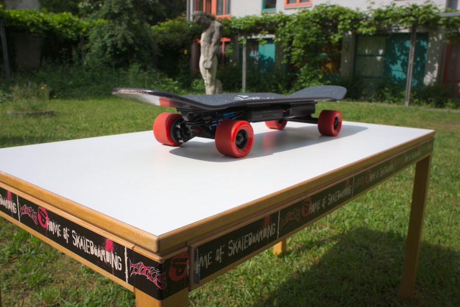 Hi Leute, das Board ist noch zu haben! - der Enertion r-spec 2.0 6355 hat 2400W (http://www.enertionboards.com/electric-skateboard-parts/190kv-electric-skateboard-motor/) - Board: Arbor Shakedown GT, Deck Length: 37", Deck Width: 9.25", Wheelbase: 18.75" - Reichweite: Das kommt auf deinen Fahrstil drauf an. Referenz: Mit 15/40er-Ritzel im Ritzelrechner 17,3 km. @Dude: Das war nur eine Projektarbeit und keine Masterarbeit - evtl. schau ich die Tage mal drüber und schick dir einen neutralen Auszug - damit kannst du dann machen was du willst^^ LG Stefan -