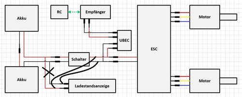 Hi Leute, ich hab auch mal einen Plan erstellt. Ich will mein Board so richtig gut dokumentieren. Was muss ich jetzt genau noch ändern, damit der Empfänger vor der ESC aktiviert wird? Ich kann ja nicht einfach Akku - Empfänger - ESC in Reihe schalten!? LG Stefan
