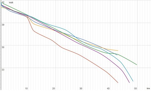 Hier im Anhang sind paar reale Messwerte eines wirklich guten Akkus, verschiedene Strecken, verschiedene Bedingungen. Und das mit einem Bamboo Gen2, ich muss über 2h Vollgas fahren bis der Akku endlich leer ist, das schaffen weder die GTs noch das One :peace:
