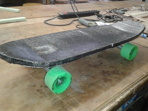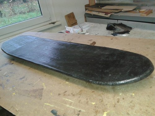 So, hab gestern mein erstes Deck aus dem Vakuumsack genommen und auf die Trucks gestellt. Muss noch verschliffen werden. Hier mal ein Foto... Das Teil wiegt so wie abgebildet satte 3kg. Ich habe es wohl mit der Materialauswahl etwas übertrieben:D. Also, auf jedenfall ist es Bombenstabil geworden;). Jetzt werde ich nochmal eins in einer anderen Bauweise bauen. Die Idee ist dieses mal mit der Styroschneidemaschine einen Kern zu schneiden und diesen in Cfk einzupacken. Ich gehe mal davon aus, das ich so noch etwas an Gewicht sparen kann ohne auf die nötige Festigkeit verzichten zu müssen. Versuch macht klug!