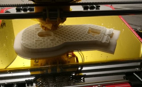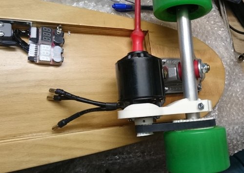 Danke Nico für den Hinweis, Versuch macht klug. Seit dem 23.12. habe ich mein Motor (ein 6374’er) und konnte meine Motorhalterung fertig konstruieren und drucken. Da es sich um einen Probedruck handelte, hat dieser nur eine Dichte von ca. 20%. Heißt alle Außenflächen sind 2mm normal gedruckt und im inneren wird alles durch Wabenstruktur gefüllt (siehe Bild). Da der Probedruck bis auf ein paar kleine Korrekturen schon sehr gut passte und ich es nicht erwarten konnte mit dem Bord zu fahren, habe ich am 24.12. alles montiert und die erste Testfahrt unternommen. Es funktionierte und auch nach ca. 20km hält alles. Mal schauen wie lange der Leichtbaumotorhalter das mit mach? Aber so kann ich schon mal die Schwachstellen am Halter erkennen und an diesen Stellen verstärken und mit 100% Dichte neu drucken. Ich werde die Halterung wohl noch schwarz machen, damit diese nicht so auffällig ist. Nur mit dem Keilriemen bin ich mir noch nicht so sicher, wie straff dieser gespannt werden muss? Wenn da jemand noch Hinweise hat, bin ich sehr dankbar.