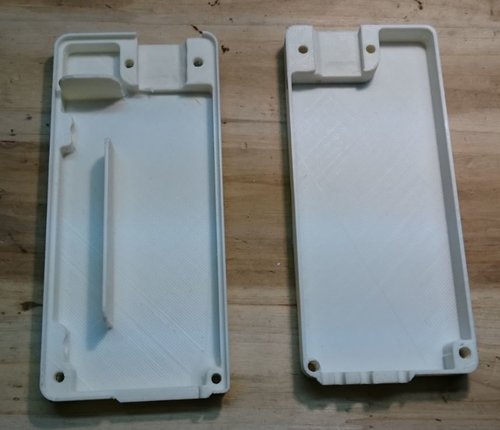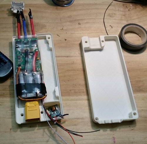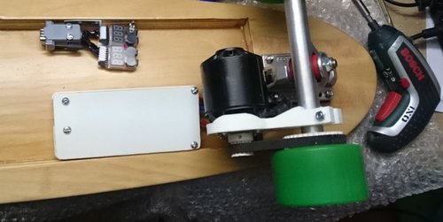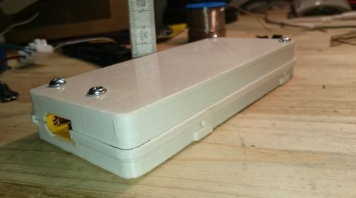 Nach langem warten, Stornierung und Neubestellung habe ich meine VESC doch noch am 18.12. bekommen. DANK http://www.eSk8.de auch gleich mit der neuen Firmware und in 2 Tagen. TOP!!! Um die Motorsteuerung und den „Kama Nunchuk Receiver“ vor Staub, Wasser usw. zu schützen habe ich mir eine kleine Box konstruiert und per 3D-Drucker gedruckt. Ein paar Lötarbeiten waren noch zwischen Nunchuk-Receiver und VESC-Stecker zu machen aber das hat ja elkick in der Wiki-Installationsanleitung ausführlich beschrieben. Dann den XT90 Stecker an den VESC lötet und mit einem Dremel die Steckeraussparung an der gedruckten BOX nacharbeiten (so das der Stecker gut rein und raus geht, wenn die Box verschraubt ist). Die Unterschale hat 4 Sechskantaussparungen für M4-Muttern und seitlich 2 Löcher für Holzschrauben womit die Box ans Brett geschraubt wird. Deckel rauf 4x M4-Schrauben rein und fertig. Der Link für die 3D-Druckdatei: http://www.thingiverse.com/thing:1231219/#files