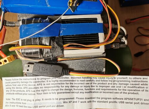 - ESC von Alienpower, vermutlich dieses Model: https://alienpowersystem.com/shop/esc/hel-esc/alien-150a-2-8s-heli-esc-bec/