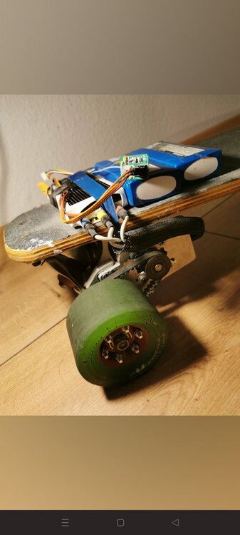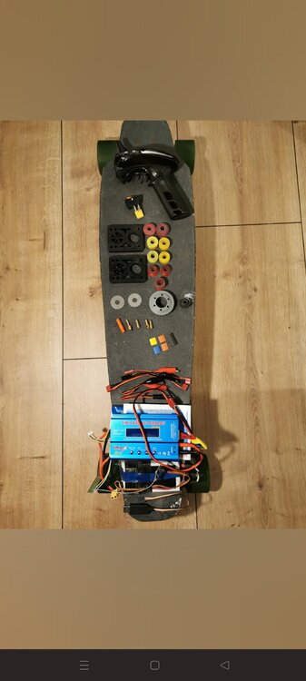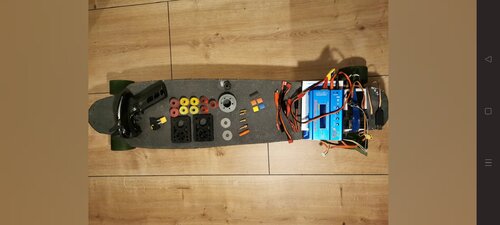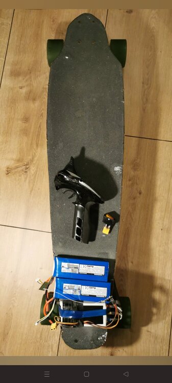 Hallo zusammen. Habe mir vor paar Jahren ein Elektrisches Longboard gebaut und hatte nie wirklich Zeit gehabt um es zu fahren und auch das Projekt zum Ende zu bringen, bzw. ein Gehäuse für Elektronik einzubauen. Ansonsten funktioniert es völlig und man kann es auch vorsichtig ohne Gehäuse fahren - ich habe z.B. die Elektronik vorübergehend  mit Klebeband befestigt um die Probefährte durchzuführen. Das Longboard wurde fast nicht benutzt - lediglich 5 mal für Testfahrten.  Die Geschwindigkeit und Reichweite werde ich in meinen Berechnungen überprüfen und nachreichen aber das Ding soll ca. 20-25 km/h schnell fahren mit bis vllt. 10-15 km Reichweite (nicht mehr sicher, werde überprüfen). Weitere Infos: