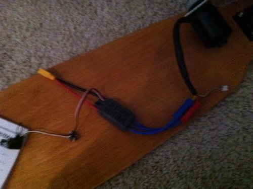 Ich habe mir ein eLongboad selber gebaut und habe nun folgendes Problem: Wenn ich alle Bauteile mit einander verbinde und die Fernbedienung auf den richtigen Channel setze, dann beschleunigt der Motor von alleine und bremst sich wieder ab. Das wiederholt sich durchgehen. Ich kann über die Fernbedienung nur ein bisschen mehr Gas geben oder bremsen. Warum macht der Motor das von alleine?? könnte es daran liegen, dass der Motor mit Hallsensoren gebaut ist, aber mein ESC ohne Sensoren funktioniert? Oder ist vlt der Akku kaputt? mein Setup: ESC: Turnigy 80A Brushless: http://www.hobbyking.com/hobbyking/store/__24254__Turnigy_AE_80A_Brushless_ESC.html Motor: Alien 5070 HEV Outrunner brushless motor 270KV 2200W : http://alienpowersystem.com/shop/brushless-motors/alien-5070-hev-outrunner-brushless-motor-270kv-2200w/#tab-additional_information Akku: Tunigy 6s 5000mAh: http://www.hobbyking.com/hobbyking/store/__14616__Turnigy_nano_tech_5000mah_6S_45_90C_Lipo_Pack.html Helft mir bitte, ich weiß nicht mehr weiter!