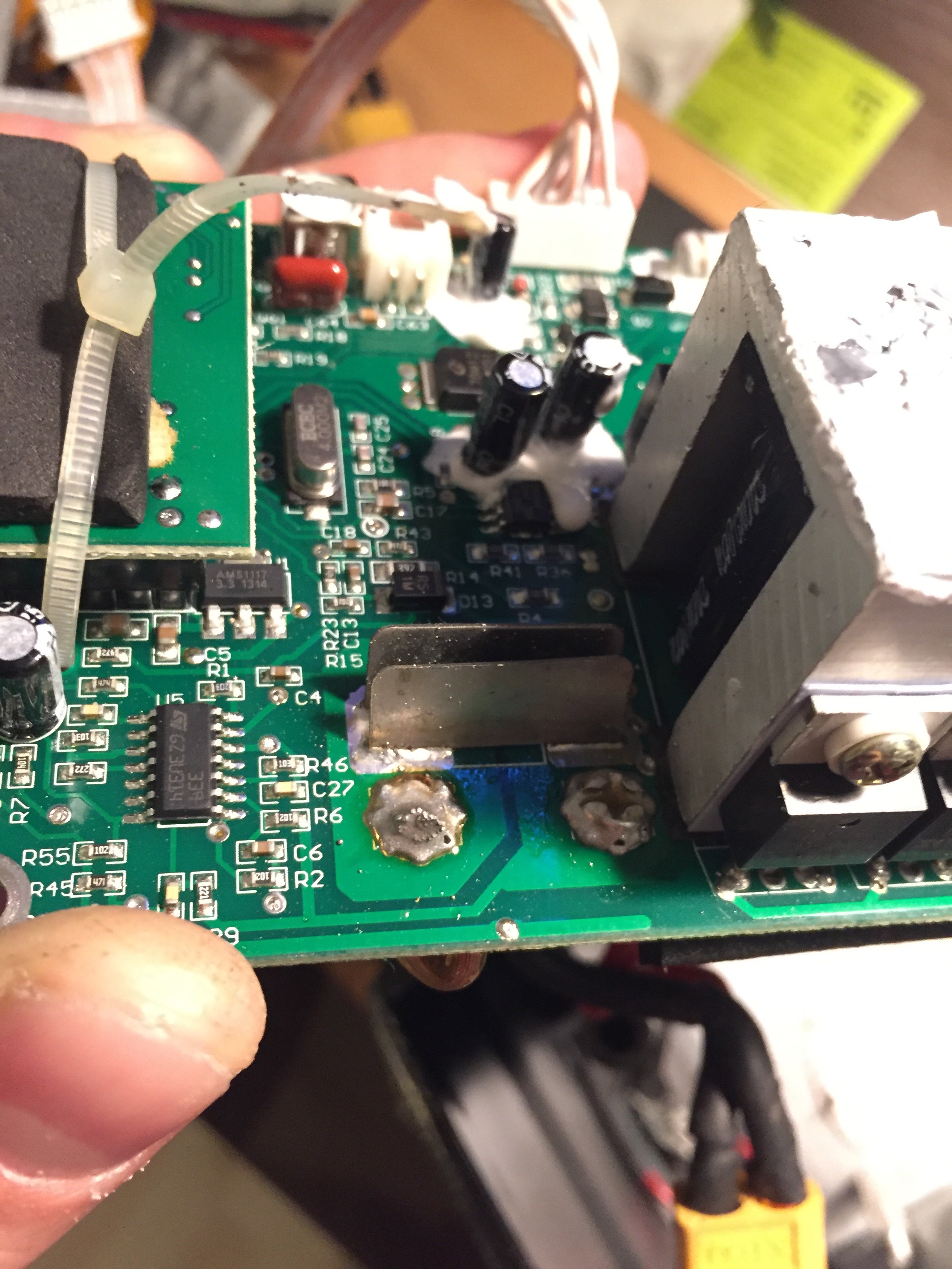 So wurde jetzt doch ein bisschen später mit den Bildern, aber hatte vorher einfach keine Zeit... Aber vorweg: Mit dem neuen Akku macht das Fahren echt noch 1000 mal mehr spaß! Viel mehr Druck hinter und ich habe endlich wieder ein bisschen mehr Reichweite. Habe 25Km geschafft, aber dann war wirklich Ende. 31V Leerlaufspannung hatte der Akku dann noch.. Was meint ihr? Ist das ein normaler Wert für einen 23,2 Ah Akku in einem 1600er Board? Ich hatte mir ja ein wenig mehr erhofft und denke auch mein nächstes Projekt wird auch ein 40Ah Akku. Weis nur ehrlich gesagt nicht wie ich den dann in den Akkukasten brinegn soll, da ich es jetzt schon ziemlich eng fand durch das fette BMS... Ich habe mal ein paar Bilder von der Elektronik gemacht und denke diese ist identisch der Mo-Bo 800/1600 Elektronik..? Den Shunt Widerstand habe ich denke ich auch ausfindig machen können. Was denkt ihr wie ich hier vorgehen kann um den richtigen Wert zu finden um auf ca. 75A Grenzstrom zu kommen? Beste Grüße