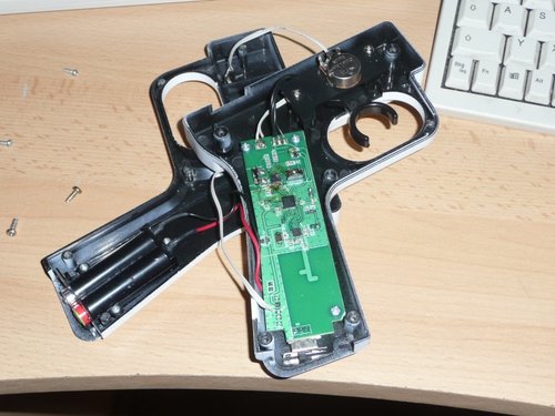Die Unauffälligkeit ist ein plus, okay. Aber das man keinen intuitiven Gasfinger hat, sondern zum beschleunigen bzw langsamer werden auf verschiedene Taster drücken soll, finde ich furchtbar unergonomisch. Okay, für die Bremse reicht ein Taster, die ist beim ES ohnehin nicht analog. Vielleicht könnte man einen Carrerabahn-Controller modifizieren. Daumendrücker für Tempo, dann zwei Taster für Bremse und Umschaltung vor/rückwärts. Wird aber kein einfacher Job... Dann besser einen dicken Strauss Kunstblumen an die Pistole, als Blumenbote hat man es nunmal eilig :thumbsup: