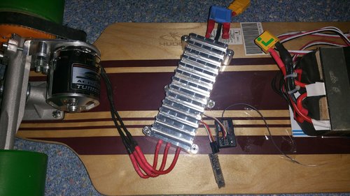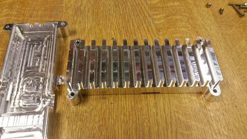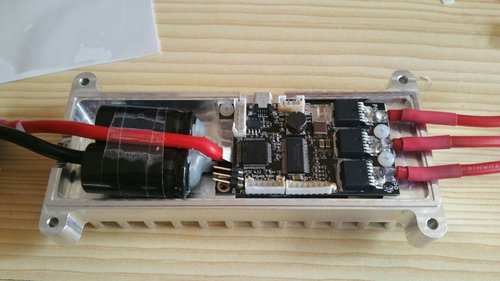 Hallo da ich gerade beim Bau meine E-Longboards bin und dazu ein VESC verwende hab ich mir dafür mal ein Gehäuse designed. Wirkliche fertiglösungen gibt es ja nicht und wäre für mich auch nicht wirklich in Frage gekommen. Hab sehr viel Spaß dabei soetwas zu machen. Ziel war es, dass das VESC mindestens spritzwassergeschützt ist und eine möglichst gute Kühlung hat (ob ich das brauchen werde wird sich zeigen). Herausgekommen ist dabei folgendes. Ich bin mir nicht sicher ob ich vielleicht ein wenig übertrieben habe Gehäuse am Board montiert. Leider schief, da die Leitungen sonst zu kurz gewesen wären und ich keine Lust hatte die zu verlängern. Gehäuse in Produktion Das Gehäuse kühlt alle Mosfets direkt, die Shunts, DRV, ARM und die Platine auf der Seite der Motorkabel. Ob ARM und DVR nötig gewesen wären kann man sich drüber streiten. War aber auch nicht wirklich ein zusätzlicher Aufwand also schon ok. Zwischen dem Alugehäuse und dem VESC sind überall an den Berührungspunkten Wärmeleitpads mit 0,5 bzw 1mm. Diese dienen auch als Isolator. Das Gehäuse hat keinerlei elektrische Verbindung zum VESC. Die Nut im Deckel/Gehäuse ist als Dichtung gedacht. Hier sollte Flüssiggummi funktionieren. Die Durchführung der Kabel ist im Moment einfach nur streng und dadurch schon ziemlich dicht. Hier kommen aber wohl mal noch Gummidurchführungen. Die zwei Öffnungen sind für den USB Anschluss und für den Port für ein Bluetooth Modul oder Nunchuck Empfänger. Auf die USB Öffnung kommt noch eine Abdeckung und an die andere Öffnung ein Gehäuse aus Kunststoff für den Empfänger. Hier noch ein paar Bilder. Bitte nicht zu genau auf die Steckerleisten des VESC schauen. Die sind bei einigen Heißluftlötaktionen ein wenig in Mitleidenschaft gezogen worden :cornut: Gruß Alex