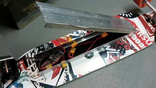 Hi, ich bin auf der Suche nach Ideen zum Bau einer Akkubox. Derzeit habt ich alles in einem kleinen Sortimentskasten aus Plastik verbaut und wollte diesen ans Deck schrauben. Leider habe ich nicht bedacht dass das Deck gebogen ist und ich somit keine anständige Auflagefläche habe. "Ziehe" in den Kasten mit Schrauben "in Form" geht der Deckel nicht mehr zu :skep: Aktueller Planungsstand im Kopf ist: - zwei Alu-Winkel-Leisten ans Board geschraubt - eine U-Alu-Schiene aufgesetzt - an der einen Seiten mit Popp-Nieten als Scharnier befestigt - auf der anderen Seiten mit Gewindennieten und Rändeschrauben zum schnellen öffnen.... 3D-Druck halte ich nicht wirklich für sinnvoll .. denke eine Boardsteinkante schafft das ABS/PLA oder PETG nur bei kleiner Geschwindigkeit Habt Ihr noch andere Inspirationen ? Ach so .. rein soll: - VESC - Empfänger - 2 x 3s 8000 (14cm x 7cm x 3cm LxBxH) Tom