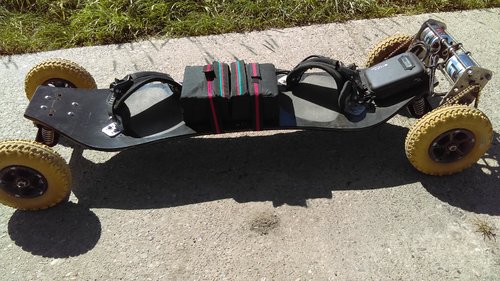 Moin aus dem Norden Ich bin Felix und wollte mal mein Board vorstellen, was ich vor ein paar Wochen gebaut habe. Gesteuert wird das ganze über VESC und 2x SK3 6374/ 192kv mit Kettenantrieb. Als Enegerieversorgung habe ich mir zwei 6s Akkus gebaut und in Reihe zu 12s verbunden. Höchstgeschwindigkeit ist 45 Kmh und schweres Terrain und der steile Deich sind kein Problem Wie weit ich mit einer Akku Ladung komme muss ich noch ausprobieren, bin noch nicht mehr als 25 Km gefahren. Es macht auf jeden Fall eine menge Spass :peace: Grüße, Felix