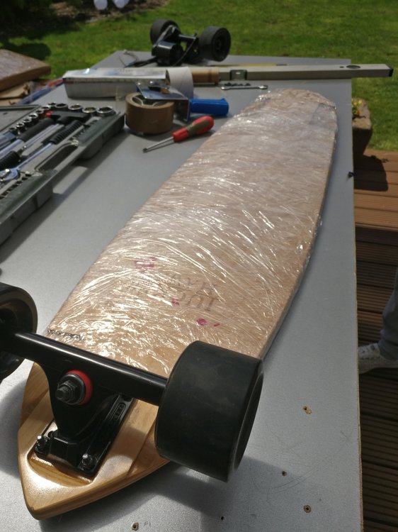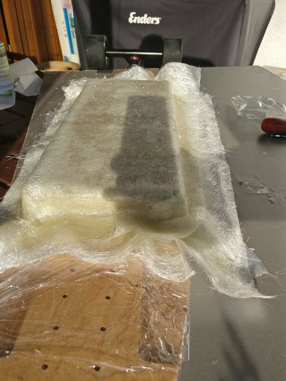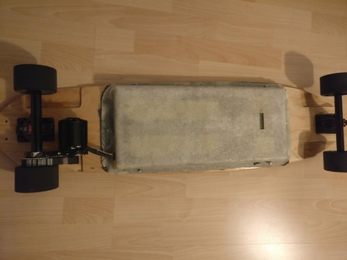 Moin zusammen, mein Board ist so gut wie fertig und ich bin auch schon die ersten km gefahren :peace: Folgende Hardware ist jetzt verbaut: - 6374 200KV 3,3KW - 10S3P 9AH LiIon LG HG2 - VESC inkl. AntiSpark - LCD-Display - GFK-Eigenbaubox (Bilder folgen die Tage) - Jucker Hawaii Mahalo - Caliber II und 83mm Stickies Die GFK-Box habe ich aus 163g/m^2 und 300g/m^2 Glasfasergewebematten gebaut. In der Box befindet sich auf weichem Moosgummi der Akku und die Elektronik. Zu dem Brett kann ich nur sagen: Es fährt sich sehr gut, es liegt sehr stabil auf der Straße und bleibt auch bei höheren Geschwindigkeiten sehr stabil :cornut: