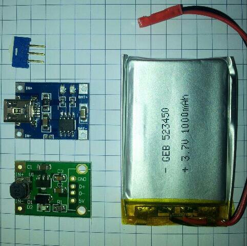 Display 3.2" TFT, Touch, 320x240, 65k Farbunterscheidungen, 8/16-Bit Bus parallel Ist für €18,- bei Amazon zu bekommen. SD-Card-Slot Akku 3.7V 1000mA mit Schutzelektronik, Schalter, USB-Lader mit einstellbaren Ladestrom bis 1A, Boost Wandler von 2-4V auf 5V Akku € 10,- Schalter € 0,75 USB-Lader € 2,80 Boost € 5,50 Vibrationsmotoren Radial und Axial Radial € 2,60 Axial € 2,50 Erste Test haben deutlich gezeigt, das der Axial mehr am Arm rüttelt. Der Einbau ist aber schlechter als beim Axial. Dieser ist geschlossen und leicht einzukleben. Piezo 3-5V mit Elektronik, € 1,30