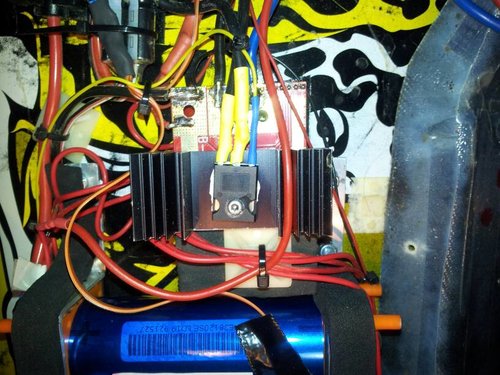 So könnte es aussehen. 4mm qm direkt am MOSFET, mit Schrumpfschlauch als Schutz, angelötet. Das gelbe Steuersignal kommt vom Arduino, Teensy oder die Schaltung, die ich skizziert habe. Dafür reicht eine kleine streifenlochraster Platine völlig aus. Da hier kein nennenswerter Strom fließt, kann einfache Litze verwendet werden. Schalter mit Licht? Ich möchte nicht die Exekutive auf mich aufmerksam machen. VG Barney Ich habe hier einen Kühlkörper Schnittrest verwendet! Der ist nicht leistungsangepasst.