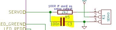 Der zweite Block beschreibt die Verbindung zwischen der VESC HW4.7 und der nRF Platine. Die 4.7 fehlt ein Pin, der vom Servo geliehen wird. Der Servo Pin hat aber einen Tiefpass (Kondensator C3), der vorher ausgelötet werden muss. Ganz wichtig ist, nicht die 5V mit 3.3V zu verwechseln, sonst der nRF befriedet.