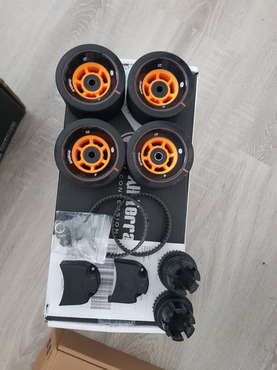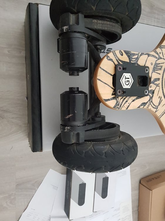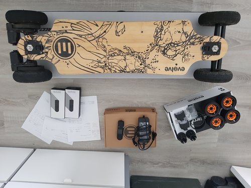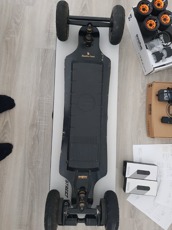 1. Moin Leute, biete hier mein geliebtes Evolve Bamboo GT Street zum Verkauf an. Habe mir für dieses Jahr eine anderes Projekt vorgenommen welches meine Zeit in Anspruch nimmt... Stichwort "Mountain-Board" 😉 Zum Setup: 1x Evolve Bamboo GT AT (11Monate Restgarantie, Rechnung liegt bei) 1x AT Setup (Reifen, Schlauch, Felgen, Riemen, Abdeckungen, Lager, Kleinteile) 2x Remote Cotroller (ein Cotroller mit neue Firmware "Safe Modus") 1x Original Evolve Ladegerät 1x OVP + Bedienungsanleitung 1x Original Rechnung "Evolve GT street" 1x Original Rechnung "AT-Setup" Zum Board: Das Board ist in einem Top Zustand und hat nur geringe Gebrauchsspuren (siehe Foto). Nach jeder Ausfahrt wurden die Gummis, falls nötig, nachgefettet und alle Schrauben ggf. nachgezogen. Das Board wurde ausschließlich auf Asphalt oder befestigten Wegen gefahren. Für Offroad Fahrten war mir das Board zu schade. Man Könnte sagen es handelt sich um ein gepflegtes Schön-Wetter-Board. Festpreis: 1.100,00€ Bei Interesse und Fragen bitte PN an mich. Board kann Probe gefahren werden in HH oder Hannover (nach Absprache). Nordische Grüße aus Hamburg, und einen schönen Restsonntag. MfG Majorlog