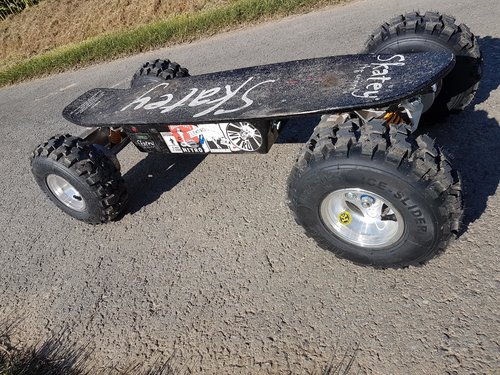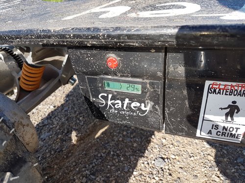 Servus. Mitlerweile kann ich mich nach Snowboarden und downhill skaten als board Nerd outen, somit war es nur eine Frage der Zeit it bis ich ans e Board komme. Als ich dann mal geschaut hab was es so neues auf dem Markt an fun - board sport Geräten gibt hab ich so ein 800w Skatey bei youtube gesehen und war direkt begeistert... nachdem ich gesehen hab es gibt sowas mit 4 x 800w und Offroad bereifung musste direkt so ein Board angeschafft werden. Klasse Teil, macht richtig laune :elektro-skater3: Fährt auch schön schnell, die wobbels bei 30 kmh sind aber auch nicht ohne. Großen dank an Kai, er hat mich echt spitze beraten und erstklassigen Support geleistet ihm hat mein Brett Upgrades wie einen fetten 34ah Lithium Akku und noch fettere Bereifung zu verdanken. Ohne Übung ist eine Vollgas fahrt immernoch nicht zu empfehlen aber das liegt einfach an der Geschwindigkeit ... wenn man ein Brett schneller fährt als man laufen kann muss man es beherrschen, ihr versteht schon Um das schwere Gefährt nicht doch mal wegen falsch eingeschätzter Ladung heim zu schleppen hab lch noch elne Kapazitätsanzeige eingebaut. Jetzt bin ich happy Bin gespannt was es im Schnee so kann Ansonsten, ich wünsche ich uns alles positive Entwicklung in Sachen elektrische Fortbewegung in Deutschland Rock on !!!