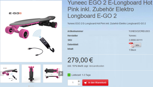 22. Wenn deiner Tochter 20 kmh ausreichen sowie 30 km Reichweite (realistisch 25 km) ein Rollendurchmesser von 90 mm und Gewicht von 6 kg könnte ich dir das Yuneec Ego-2 empfehlen. Bekommste mittlerweile fast überall unter 300,- € Habe es selbst hier noch stehn und hat mich vor meinem Evolve 2 Jahre fast täglich begleitet und das ohne Ausfälle (keinen Motor/elektrik Schaden oder ähnliches, läuft immernoch 1a) Lediglich das Deck hatte ich durch ein Landyachts Double Drop Deck getauscht da ich es lieber niedriger mag ;o) Es gab auch nie bei niedrigeren Temperaturen unter 0 irgendwelche Akku/elektrik Ausfälle. Die Fernbedienung ist Mädchengerecht (Bremst und gibt sehr sanft Gas ohne das es einen runterhaut) Bekommt man auch noch billiger hab das Erstbeste genomm (keine Angst gibt es in mehreren Farben) Und wenn doch mal was sein sollte zwecks Garantie gibts auch hier keine Probleme da alles Deutsch.