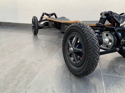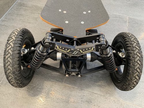 Das Board ist vollausgestattet, mit großem 900Wh Akku, Allrad, sowie Lichtern vorne und hinten.