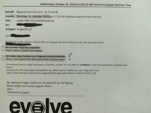 Ich verkaufe meinen Evolve Akku, da ich auf einen größeren Akku gewechselt habe. Der Akku wurde im Oktober 2018 bei Evolve ausgetauscht und danach nur ca. 20 mal geladen. Es wurde nicht drann rumgelötet und die original Kabel sind auch noch drann.