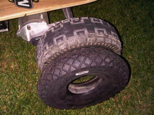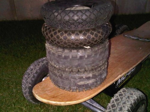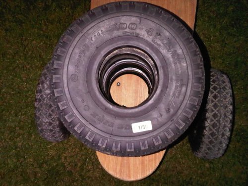 16. Im Baumarkt hat mich wie erwartet nun doch der schwäbische Geiz übermannt und so wurde mein MoBo jetzt eine Kreuzung aus FunBoard und Sackkarre... 4 neue Reifen zum Preis von je 5,90 EUR - da konnte ich einfach nicht wiederstehen... Zugegeben, das Profil sieht nicht annähernd so toll aus, wie bei den Orginal-Reifen aus dem MoBo-Shop, aber was solls. Muß ja schließlich schon für die Boards meiner beiden Sprösslinge sparen, die nur darauf warten, daß ihnen Papa bald ein eigenes aber kleineres und leichteres E-Board besorgt. Vielen Dank noch mal an Dich - Slowrider - für den guten Tip :thumbsup: