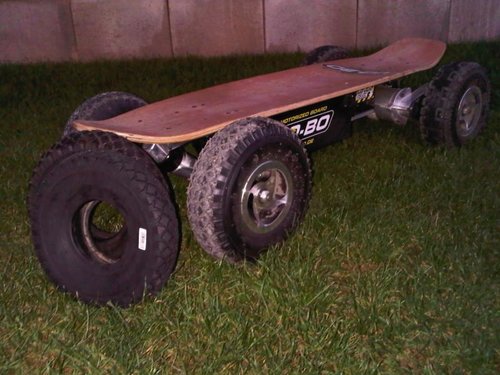 Hi Loran, bin auch begeistert von Deinem Allrad-Quattro. Woher hast Du eigentlich die Radnaben-Motoren bekommen ? Und welche Leistungsdaten haben die ? (Watt, Spannung, Strom, Umdrehungen, usw.) Im Prinzip hast Du das Antriebsprinzip vom großen Offroad-ElektroSkate Board vervierfacht. Cool :thumbsup: Bei uns siehts stark nach Regen aus....:mad: Gruß Paul