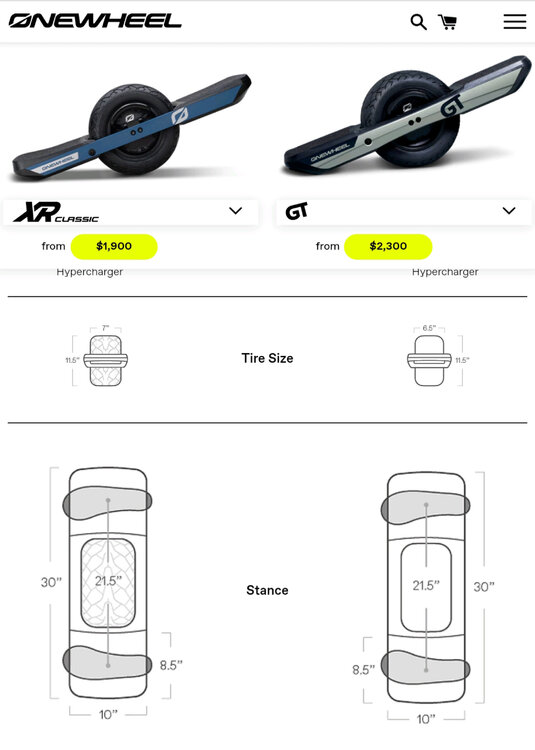 Moin! Wahrscheinlich sind schon viele von Euch ganz scharf auf eine erste Review des neuen Onewheel XR Classic (welches ich bereits in die Marktübersicht eingefügt habe). Die Community trauert dem XR nach und hätte offenbar am liebsten das Unmögliche: ein neues XR mit mehr Power, größerer Reichweite - aber exakt den gleichen Abmessungen, dem gleichen Gewicht und dem bekannten Fahrgefühl. Bis eine Review von The Float Life kommt ... wird es wohl noch etwas dauern. Die Herren meinten ja, die Future Motion Website 'hacken' zu müssen, mussten aber letztlich ihre Bestellung wieder canceln und dann eine neue Bestellung aufgeben. Ich schätze, dass dann die Frage 'wie fährt es sich denn nun ... wie ein XR von damals oder doch nur wie ein GT?' in wenigen Tagen von ihnen geklärt wird. Ich hänge die entsprechende Review dann hier an. Schneller als The Float Life war allerdings Justin von FixMyPev, er hat gestern bereits ein längeres Video über das technische Innenleben des XR Classic veröffentlicht, dessen Inhalt - kurz zusammengefasst - auf Folgendes rauslief: Wie bereits zu erwarten war, haben die Verantwortlichen von Future Motion viele Synergieeffekte genutzt, indem sie im Wesentlichen die Bauteile des Onewheel GT wiederverwertet haben. Somit ist der Controller des XR Classic identisch mit dem des GT, einzige Veränderung / Verbesserung sind neue Steckverbindungen, die nun einen solideren Eindruck machen. Wesentliche Veränderung / Verbesserung zum GT ist zunächst einmal das Felgenmaß, welches von den unsinnigen 6.5 Zoll wieder auf 6 Zoll korrigiert wurde. Das Innenleben des Motors SOLL (laut zitierter Aussage von FM-Teamfahrer Neil Bennett) ein Zwischending sein zwischen dem wenig überzeugenden Motor des GT und dem höherwertigem Motor des GT S-SERIES. Auseinandergenommen hat den Motor (Stand heute) allerdings noch niemand. --- Nachtrag: mittlerweile schon, laut Jeff McCosker stimmt die Aussage von Neil Bennett: "It's a GTS stator with regular GT magnets in a 6" hub" Die äußeren Abmessungen des Boards sind ebenfalls exakt so wie beim GT, siehe die von mir eingestellten Grafiken. Während das alte XR eine Breite von 9 inch / 23 Zentimetern hatte, liegt das XR Classic nun bei einer Breite von 10 inch / 25,4 Zentimetern. Der ab Werk verbaute Standardreifen ist beim XR Classic (warum auch immer...) mit 7 Zoll breiter als beim GT mit seiner Reifenbreite von 6.5 Zoll. Heute hat Justin sich nun dem Thema Reichweite gewidmet, denn bisher ist auch noch unklar, welche Spezifikationen der Akku im Detail hat / welche 18650er Zellen in 18S2P-Bauweise verbaut wurden. Und davon handelt nun dieses Video: Falls auch bei Euch die Einbettung des Links spinnen sollte (sowas fabriziert die Foren-Software ab und zu) dat Janze nochmal manuell: https://m.youtube.com/watch?v=m5UVeeHUCq4 Kleiner Service meinerseits - die Verschriftlichung von vielen enthaltenen Details: Justin fährt auf einer ihm sehr vertrauten Strecke, auf der er bereits die Reichweiten von XR, GT und GT S-Series ermittelt hat. Er scheint ein Fahrer zu sein, der überdurchschnittlich viel Reichweite herausholt, sei es durch sein Gewicht von 79 Kilogramm, den gefahrenen Reifendruck oder auch seine gleichmäßige und entspannte Fahrweise. So gibt Justin für die verschiedenen Boards folgende Reichweiten-Rekorde an: Onewheel XR: 20-22 Meilen, entspricht 32-35,4 Kilometern (letzteres bei fast 40 Grad Celsius) Onewheel GT: ca. 30 Meilen, entspricht 48,3 Kilometern Onewheel GT S-Series: 18 Meilen, entspricht 29 Kilometern Nur zum Vergleich: Mario Contino erzielte bei seinem GT S-Series-Reichweitentest (Dezember 2023) lediglich 23,2 Kilometer! The Float Life erzielte mit dem GT S-Series 28 Kilometer (November 2023). FollowDon testete die GT S-Series-Reichweite zweimal und erzielte im November 2023 etwa 22,5 Kilometer und im September 2024 dann 29,8 Kilometer. Soviel also dazu... Habt das also immer im Blick, die Werte werden wohl nicht ohne weiteres von jedem beliebigen Fahrer, bei beliebigen Außentemperaturen, beliebigem Fahrverhalten, beliebigen Steigungen und Untergründen erreicht... --------------------------------------- Justins Ergebnis für das XR Classic: 19,5 Meilen, entspricht 31,4 Kilometern. Erzielt bei 79,4 Kilogramm Fahrergewicht, 17,5 PSI/1,2 Bar Reifendruck und circa 20 Grad Celsius Außentemperatur. Den Reifen findet er nicht so toll, weil er nicht unbedingt zum Carven einlädt, die Footpads sind ebenfalls nicht seins, der Pushback scheint allerdings bei 20 Meilen pro Stunde zu liegen. Auch hier kommt das XR Classic ganz nach dem GT... ------------- Die Kollegen von Carve Creative kamen auf ganz andere Werte: 10,4 Meilen/16,7 Kilometer bis 11% Ladung es wären bis 0% wohl c.a. 11 Meilen/18 Kilometer geworden bei 118 Kilogramm Fahrergewicht 16 PSI/1,1 Bar Reifendruck (ab Werk so geliefert) bei frischen 13,3 Grad Celsius Außentemperatur ------------- Erweiterung: Hier eine der wenigen Reviews, die bisher überhaupt erschienen sind - interessanter Weise vom verärgerten Kunden und somit Kritiker des Pint S, Jeff Barksdale (siehe Beitrag vom 7. September ⏫). Kurze Anmerkung: ich habe auch den obigen Pint S-Beitrag erweitert und ich würde Euch sehr empfehlen, zu lesen, was sich der treue und offenbar zahlungskräftige Kunde -- Herr Barksdale fährt seit über 5 Jahren und besitzt/besaß bereits: 6 Onewheel XR, 3 Onewheel GT, 2 Onewheel GT S-Series -- von Future Motion anhören durfte. Tut Euch einen weiteren Gefallen und lest Euch durch die weit über 100 Kommentare... Doch nun zurück zum XR Classic. ---------------- Ich merke erst jetzt, dass ich den Link nicht eingefügt hatte... Autsch! Jeff Barksdales Bewertung des Onewheel XR Classic im Wortlaut: "Das XR Classic ist im wesentlichen ein neu verpacktes GT, es macht viel Spaß, fühlt sich etwas ausbalancierter an, ist etwas leichter als das GT, hat etwas weniger Reichweite. Der Motor jammert bei Steigungen genau wie beim GT und das XR Classic überhitzt genau wie d
