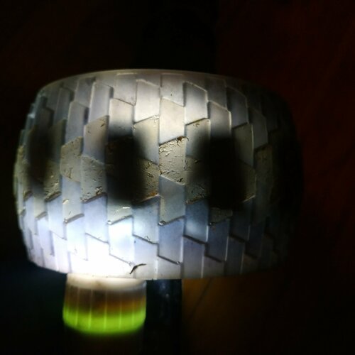 Ich habe meine mal mit einer Taschenlampe "geröntgt". Man sieht das der Kern unterschiedlich stark durchscheint. Vielleicht ist es bei Dir ein ähnlicher Effekt. Ich habe bis jetzt etwa 400km damit runter und kann bis jetzt keine Schäden feststellen. Ich hoffe das bleibt so.😀