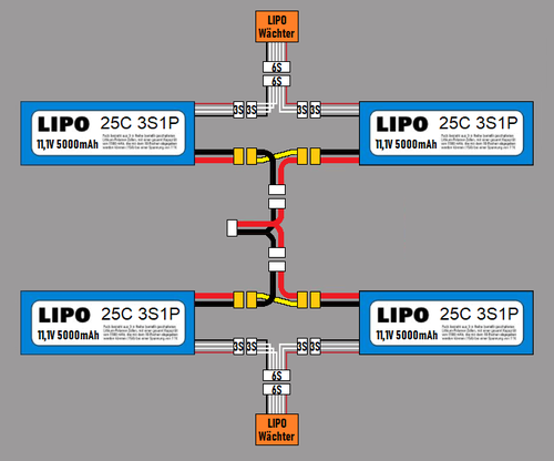 Deshalb überlege ich nun 4x Turnigy 5000mAh 3S 20C Lipos zu verwenden. Davon würde ich