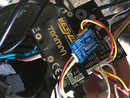 Moin moin, bin neu hier im forum, auch wenn ich schon viel hier gelesen habe....... deswegen erstmal kurz vorstellen, auch wenn das nicht mein problem ist, man kann als einfach auch den ersten abschnitt überspringen 😉 heiße jürgen, bin schon etwas älter und wohne in der schönen eifel. bastel immer gerne an allem rum, mache auch viel mit modellflugzeugen, selten einfach aus der kiste wie sie sind und schraube auch gerne an autos....... auch da wenig mainstream 🙂 nun, da mein führerschein seit knapp einem jahr in urlaub ist brauchte ich ein neues fortbewegungsmittel da hier doch eher schlechte busverbindungen vorhanden und die wege recht weit und bergig. auch wenn mich e-skateboads interessieren habe ich mir erstmal ein e-bike gebaut, an dem ich auch viel freude habe und natürlich viel unterwegs mit bin. angefangen mit einem e-bay umbaukit, radnabenmotor mit 1500W. am meisten störte mich allerdings der regler der im kit dabei war so das ich mich nach neuem umsehen musste und mich recht schnell in den vesc verliebte, stromgewinnung beim bremsen und foc...... einfach klasse!!! die vielen einstellmöglichkeiten geben einem ein gefühl von freiheit.... also bestellte ich mir zum testen erstmal den 50amp von flipsky, weil er es angeblich können sollte betrieben an 13s 40ah lipo...... was soll ich sagen, es funktionierte so gesehen schon echt gut, wobei er schon ziehmlich ausgereitzt erschien da ich auch die vollen 50 amp nutzte, vorwärts wie auch zum bremsen was schon zu erheblichen wärmeproblemen fürte. mit dem 3d drucker eine schöne aktivkühlung "gebastelt" half schon ein wenig, der betrieb an 12s dann wirklich funktionabel. aber der standschub reichte mir nicht aus und da der motor wohl einiges mehr als 1500w kann (wurde nichtmal warm) musste ein neuer controler her, also maytechs mtsesc6.6 200amp, was wohl sogesehen ein fehler war, denn leider kannte ich hier den deutschen shop noch nicht und bestellte bei einen shop in england, viel porto und null service, den einem monat funktionierte der controler prima, dann ganz plötzlich am nächsten tag nichts mehr, tot. aber die vom shop wollen mir nicht helfen ( antworten garnicht auf emails und mit garantie wollen sie auch nichts zu tun haben) und bei maytech direkt wollen sie mir für einen "super" dicount einen neuen verkaufen. also bin ich über den winter jetzt erstmal weiter mit dem kleinen flipsky gefahren und habe geld für einen neuen gespart...... diesmal hier aus dem shop den VESC® 6 MK III von trampa, der geht recht gut mit meinen werten aber weil mir das ewige usb kabel an und ab genervt hat hab ich mir noch den tampa nrf dongle bestellt........ und nun zu meinen Problemen: ich bekomme einfach keine verbindung hin..... und mir stellt sich die frage ob ich einfach nur zu doof bin, oder irgendwas übersehen habe, oder ob das dongle ding einfach nur kaputt ist. zuerst fand die handy app zwar die vesc, aber mit der fehlermeldung das die firmware nicht compatibel sei, also keine verbindung. also neue firmware auf die vesc, die meiner meinung eigentlich schon drauf war..... seit dem findet die handy app garnichts mehr, über pc und usb alles wie gehabt. nun, wenn ich mir den dongle genau anschaue sieht es so aus als wäre da eine led drauf.... wenn ja, muss die leuchten? hat sie bei mir nämlich noch nie...... das würde dann auf einen defekt schliesen lassen, wenn nein, muss ich den dongel erst über usb aktiveren? da finde ich aber nix....., habe die kabel ca tausend mal kontroliert, auch ein zweites handy brachte mich nicht weiter.... braucht der dongle vieleicht 5volt anstelle vcc(obwohl ja vcc drauf steht???) ein wenig konfused ich bin..... und das zweit problem betrifft die maytech vesc........ was kann man da noch machen. sie funktionierte an dem einen tag tip top, wurde nie wirklich warm...... am nächsten tag tut sie garnichts mehr, außer dem kondensator ladeblitz beim anstecken..... hatte sie leider ohne anti blitz stecker betrieben, kann das sie getötet haben? also strom fliest aber keine led blinkt oder sonstiges, über usb ist kein verbindung möglich.... kann man da evtl noch was reparieren? so, viel geschrieben, hoffe mir kann jemand helfen grüße, jürgen