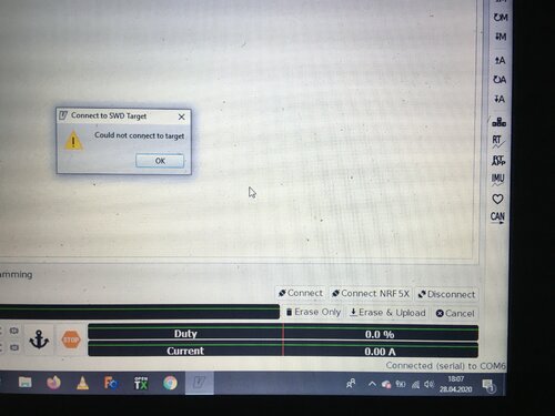 da kann ich nicht ganz folgen..... habe den dongle an einem einstelbarem labornetzgerät unabhänging versucht.... einmal mit masse zum vesc,einmal ohne...... aber dabei natürlich nicht gefahren da meine probleme mit der verbindung ja auch im stand vorhanden sind...... wie ich ihn da gegrillt haben könnte weiß ich nicht wirklich.... bzw ging ja vorher schon nicht mit dem handy werde ich nochmal versuchen, obwohl es keine sim hat, ist extra nur für diesen zweck da, sonst nutze ich ein altes se, aber da gibts die app ja nicht....... wlan war mal an, aber auch schon aus, dennoch, versuch ist es wert. doch verbindung über swd port kabel und tool hätte ja trotzdem klappern sollen -