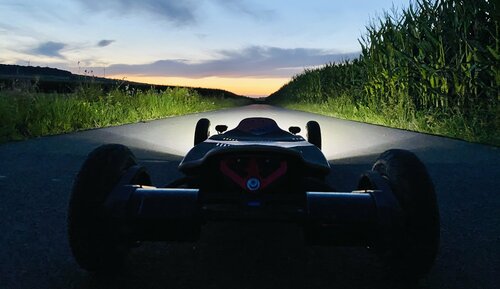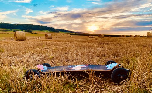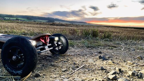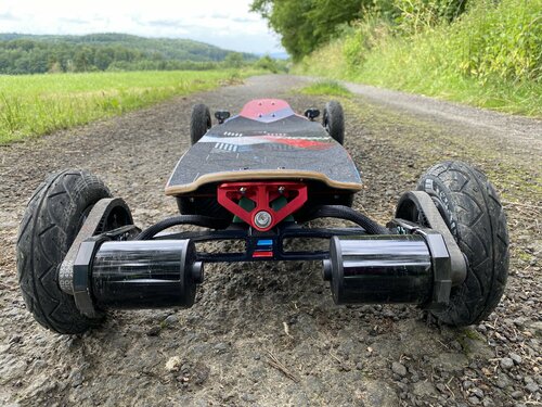 3. Hallo zusammen, gerne kann ich einen Bericht abgeben, ich darf seit 5 Tagen ein wunderschönes Lacroix Nazare mein Eigen nennen. Einfach überwältigend !!! 100% bekommen was ich gesucht habe! Versuche es kurz zu halten ;-) Ich Boarde so ziemlich alles was sich seitlich bewegt seit ich laufen kann. Land, Wasser, Schnee und das fanatisch :-) Habe also schon ziemliche Ansprüche an ein E-Board. Nur Street ist mir zu eingeschränkt, daher kam nur ein AllTerrain in Frage. Zumal ich auf dem Land lebe und unendliche Weiten von Feld- und Waldwegen vor der Haustüre habe. So bin ich ursprünglich (2017) auch auf das E-Boarden gekommen. Damals habe ich eine Zeit lang meinem Hund (Sportskanone) ein Schlittengeschirr angespannt und habe mich mit einer WakeBoard Leine drangehängt mit Street Board und dann Mountain Board. Dogboarding wurde so geboren :-) ... naja dem armen Kerl wollte ich dann doch nicht zu viel zumuten von der Strecke her. So bin ich 2017 auf das Evolve GT Bambo AllTerrain gekommen. Das war 2017 für mich das einzige Board das alles einigermassen gebracht hat was ich gesucht habe. Insgesamt viel Spaß damit gehabt. Aber Einschränkungen der Reichweite und max Speed und ab 30km/h deutliches wobbling etc. Hat mich 4 Jahre gut begleitet und wirklich was ausgehalten. Nicht geschont ! Nach 3 Jahren Accu einmal getauscht. Aber ich wollte mehr.. viel mehr > Für mich waren das wichtigste Reichweite und Speed sowie ein richtig geiles Boarding Feeling :-) so kam ich auf Lacroix. Nach sehr langem Überlegen und hadern dann doch für die Investition entschieden. Bestellt über Lacroix Europe in Slovenien. Top Beratung in nettem Chat mit Shop Betreiber. Problemlose Abwicklung und Versand. Dann Regen... dauer Regen..schrecklich wo ist der Sommer... In den 5 Tagen konnte ich noch nicht sehr viel fahren. 2x 15km und eine richtige Tour um die 42 km. Hammer, ich bekomme das Grinsen nicht mehr aus dem Gesicht. Verarbeitung absolute Spitzenklasse. Die Hypertrucks sind der absolute Wahnsinn. Das Board hält alles was es verspricht. Durch das Gewicht und die Spurbreite eine phänomenale Fahrstabilität. Die Bushings erlauben ein sehr genaues einstellen der Härte. Für mich muss sowohl ein dynamisches Carving als auch max Speed ohne wobbling möglich sein. Bisher ist kein Board so sehr an ein Snowboard fahr Gefühl dran gekommen. Wenn man sich eingefahren hat und merkt was man Ihm zutrauen kann ist es eine wahnsinniges Boarding Gefühl. Beim Carving kann man sich richtig in die Front und Backside reinhängen und pushen, bemerkenswerte Fahrdynamik und Stabilität dabei. Die Beschleunigung ist mehr als ausreichend nur das Versprechen mit dem Speed kommen sie glaub ich nicht nach ;-) .... habe bis jetzt 62km/h geschafft... nach oben fehlte nicht mehr viel. Unglaublich stabil dabei ! Überhaupt kein wobbling Gefühl. Absolut kein Vergleich zum Evolve. Da fühlte man sich ab 30km/h schon nicht mehr ganz so wohl. Überhaupt ist das gesamte Fahrgefühl völlig Anders. Die Fahrdynamik und Spursicherheit ist enorm. Das Board gibt einem unheimlich viel Sicherheit. Kenne ich so von keinem Longboard/ Skateboard oder Surf Brett. Das Fahrgefühl ist exakt wie beim Snowboard fahren von der Dynamik und der Sicherheit. Man sieht erst später das man lange Stücke locker zwischen 45 und 55 km/h gefahren es ohne es wirklich wahr zunehmen. So ziemlich das Gefühl wie es zischen einem Golf und einem Audi RS6 bei 250 km/h ist :-). Der 40km Trip hat mich absolut überzeugt ! Danach Beine wie Gummi... bzw wie nach 3 Tagen Snowboarden und endlos Glücklich und zufrieden :-) Genau was ich gesucht habe. Mal schnell ne Rund mit dem Hund. Und lange ausgiebige Tour alleine. Die Frage ist sicher was man sucht. Ich liebe es lange Strecken / Ausflüge mit dem Board zu machen und Strecken zu erkunden ohne zu sehr auf den Accu schauen zu müssen. Das Evolve hat da Leider im Schnitt nur seine 15-18 km geschafft (2017 Akku mit 250wh) > Würde das Haden jetzt natürlich auch locker Topen... Aber nicht die Bord Dynamik.. Gewicht und Proportionen machen es zu dem was es kann. Die Breitere Fahrspur im vgl. zum Evolve, oder auch den meisten anderen E-Boards ist absolut Sinnig und Bewährt sich ! Natürlich etwas auf Kosten des Wendekreises. Zusammenfassend bin ich so froh das ich mich doch getraut habe es zu bestellen ! Das Lebensgefühl das mir das Board bei jede Fahr schnell ist das Geld absolut wert. Im Endeffekt sind es grob zwei Snowboard Urlaube habe ich mit gesagt ._9 dafür habe ich die Piste jetzt vor der Haustüre !!! Das Board macht mich so was von Glücklich beim Fahren... einfach der absolute Wahnsinn. Bedienung mit dem Hoyet Puk und der Stromcore App. Da liegen auch meine Kritikpunkte. Ich finde es schade das die Fernbedienung kein Display hat. Ja muss nicht unbedingt... letztendlich ist der Track wichtiger... aber mal auf die schnelle draufgucken wie schnell man ist ...;-)... geht dann nur mit der app.. bei knappen 60km/h wollte ich dann aber doch nicht in der Tasche rumkramen... Alternativ kann man sich natürlich auch das Phone mit Sportarmband am Unterarm festmachen. Das hat mir bei der Evolve Bedienung besser gefallen. Bin aber sicher Lacroix wird da was basteln ;-) Sie bauen dann Hoffentlich auch eine Hupe ein damit diese lästigen E Biker aus dem Weg Tröten kann. Ein Riesen Stück Lebensfreude / Lebensqualität für vor der Haustüre, die alleine für diesen Zweck ihr Geld Wert ist. Ich könnte noch viel mehr schreiben... wollte mich ja kurz halten... von daher biete ich gerne an auf spezifische Fragen einzugehen wenn jmd sich melden möchte. Pros: Fahrdynamik / Stabilität Reichweite Speed Power/Traktion Verarbeitung / Technik schnelles Laden Design Kontra: Gewicht (der nur beim Tragen ! beim Fahren ist es von Vorteil) Fernbedienung Man will noch mehr :-D ...