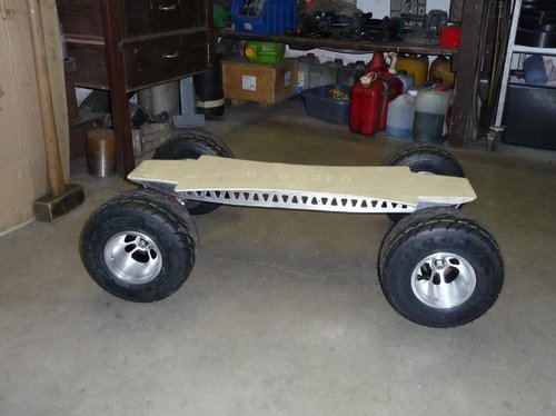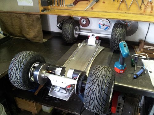 Hab gestern die erste Probefahrt gemacht. Das Problem das ich allerdings hatte ist. Das das Board mit mir gefahren ist und nicht ich mit dem Board. Ich bin eben das erste mal auf ein Skateboard gestanden und das es so schwer ist hätte ich nicht gedacht. Das gute ist das der Antrieb stabil genug scheint. Bin bis jetzt nur mit einem Motor gefahren und das auch bergauf. Eine Frage habe ich noch: Wie befestigt ihr das Ritzel auf dem Motor damit es sich nicht durchdrehen kann.? Ach ja und noch etwas wichtiges. Bei mir ist bei der ersten Probefahrt der Motor c6374 gleich mal fast auseinander gefallen!!! Liegt daran das die vier Inbusschrauben nicht fest genug angezogen wahren. Auch beim zweiten Motor sind sie fast locker gewesen. Anbei noch einige aktuelle Bilder. Das ganze e-board ist nur provisorisch zusammengebaut.
