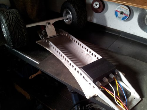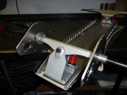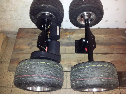 Danke für Komplimente. Der Antrieb ist ein Kompletter Eigenbau Bausatz von mir. Die Motorhalterung ist aus Aluminium und die Abdeckungen für Motor und Getriebe sind aus Kunststoff. Habe alles selber ausgetüftelt. Kunststoff hab ich auf der cnc Fräser selber ausgefräst und das Aluminium habe ich mit dem cnc Laser geschnitten. Was die Achse betrift handelt es sich um eine Original Mobo Channel Truck Achse. Ich hab nur einen zweiten Flansch dran gemacht. Den Antriebssatz darangeschraubt und fertig ist das ganze. Was die Haltbarkeit des Zahnrades betrift. Sieht es nach den etlichen Testfahrten und extremen Belastungstests mit nur einem Antrieb sehr viel versprechend aus. Gruß Gerald