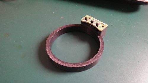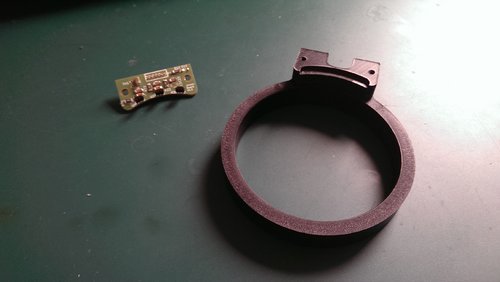 Dein Link geht nicht? Aber ich denke ich habs verstanden was du meinst. Ich bin allerdings gegen die Langlöcher. Warum? Die Platine wird unnötig groß. Das mit dem Einstellen habe ich bereits gelöst. Zwei varianten. 1 externe Befestigung. 2 Die Ringvariante ist noch nicht ganz fertig. Ich hätte auch den Platz nicht dafür. Der Aufwand für das Gehäuse ist auch nicht ohne gewesen. Alles nicht mehr zu gebrauchen. :mad: Hier ein Bild von der Ringvariante. Wie gesagt noch nicht ganz fertig. - Motor muss zur Montage nicht demontiert werden. - Zum einstellen die Klemmschraube am Halter lösen. In die richtige Richtung drehen und wieder festschrauben und fertig. Die beschriebene Klemmschraube und die Kabeldurchführung für den Motor ist derzeit noch nicht vorhanden. (wird gemacht so bald ich Zeit habe) Gruß Gerald