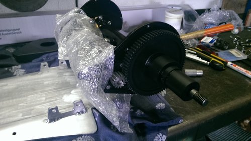 Die Ezrun arbeiten derzeit ohne lauten Lüfter. Ist bei dieser Leistung nicht mehr nötig. Einige aktuellen Daten: Brushless Controller: 4x Ezrun 150a 6s Akku: 5 Stück 6s Tuningy mit je 5800mAh. Errechnete Distanz 38km. Tatsächlich Reichweite muss erst ermittelt werden. Ich schätze etwa 30km. Motor: 4x C6374 Bruhless Motoren. Die Sensoren kann ich mir getrost sparen. Die Leistung reicht locker aus um am Berg anzufahren. Getriebeübersetzung: 1:5,57 Maximale Geschwindigkeit: mit GPS gemessen 45km/h. Fahrwerk: Umgebaute 800 Mobo Achsen. zusätzlich Motorflansch, Achslagerung umgebaut auf Messingbuchsen, Gefräste Riserpad mit 6 Grad, 15€ Lenkungsdämpfer überarbeitet. Gruß Gerald
